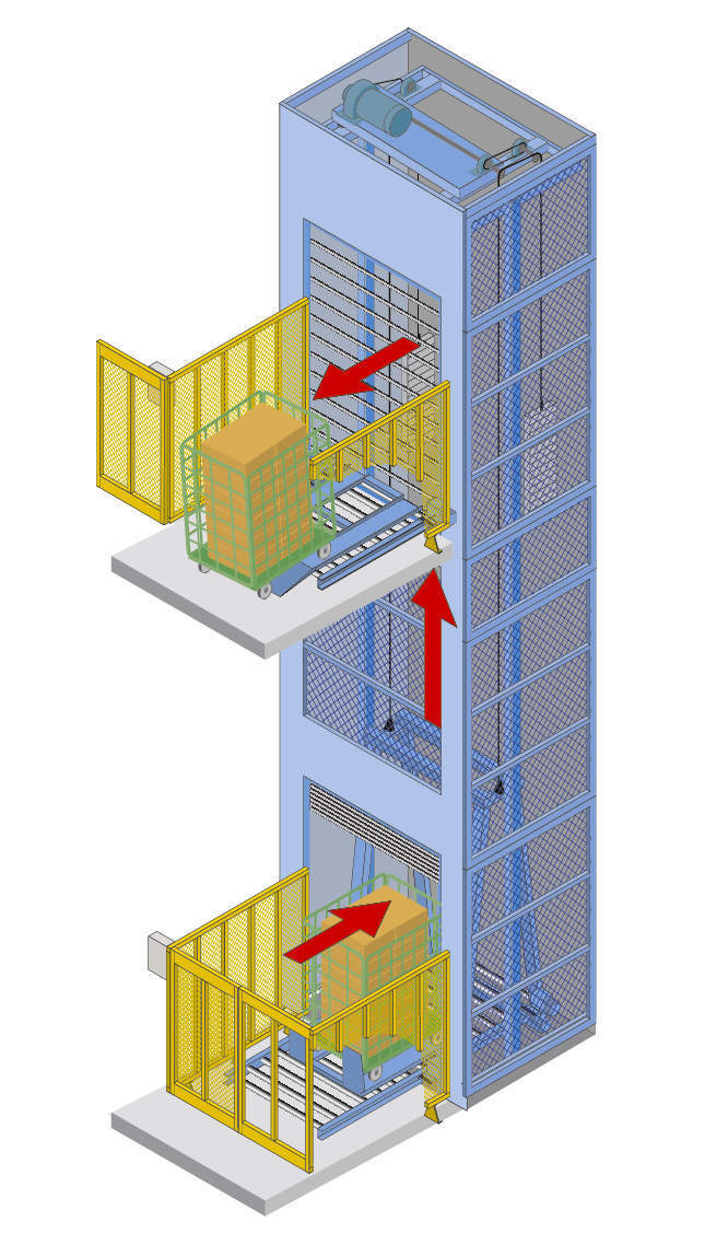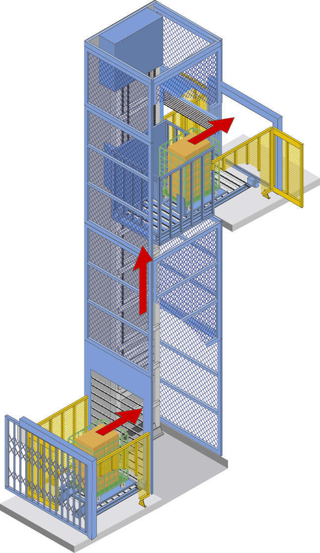 ■特にカーゴ台車の搬送に優れた垂直搬送機です。