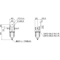 | SAF3-08-B | エアフィルタ | SAF3 | 08 | Rc1/4 | 1MPa | 5μm | 9.5cm3 | 手動ドレン付 | ブラケット付 | なし | 0.19kg |
