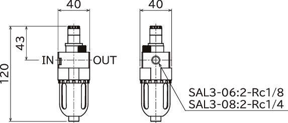 | SAL3-08 | ルブリケータ | SAL3 | 08 | Rc1/4 | 1MPa | 20cm3 | 50L/min(ANR) | なし | なし | 0.15kg |