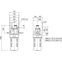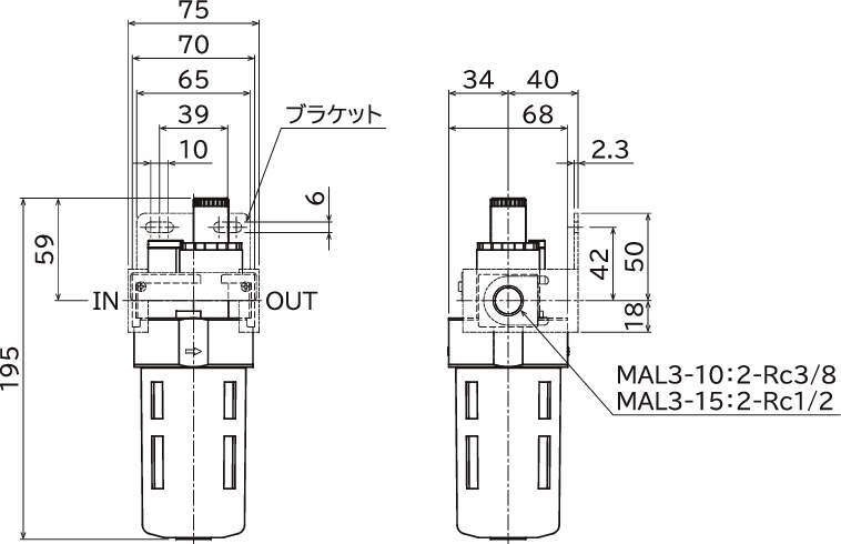 | MAL3-15-S | ルブリケータ | MAL3 | 15 | Rc1/2 | 1MPa | 200cm3 | 80L/min(ANR) | なし | メタルケース付 | 0.46kg |
