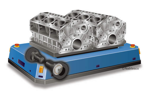 AGV駆動ユニット 精密減速機RVをメカナムホイール内に配置したインホイール構造。コンパクト性と大型AGVに求められる高耐荷重の両立を実現。 ■製品特徴 ・バックラッシュ12分以内 ・・ロストモーション12分以内 ・各社サーボモータ取付け可能 ・メカナムホイール搭載