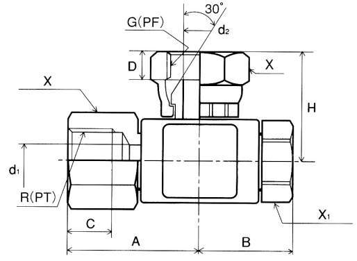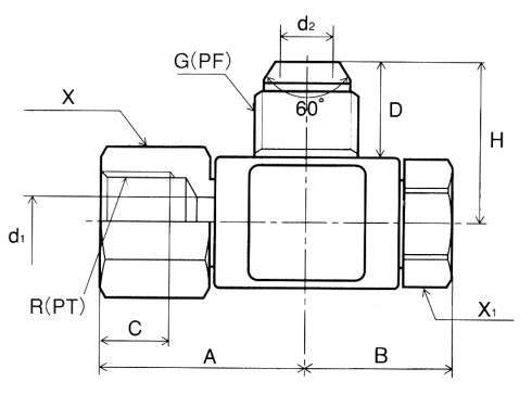 | 型式 | タイプ | A | B | C | D | H | d1 | d2 | X | X1 | 接続ねじ |