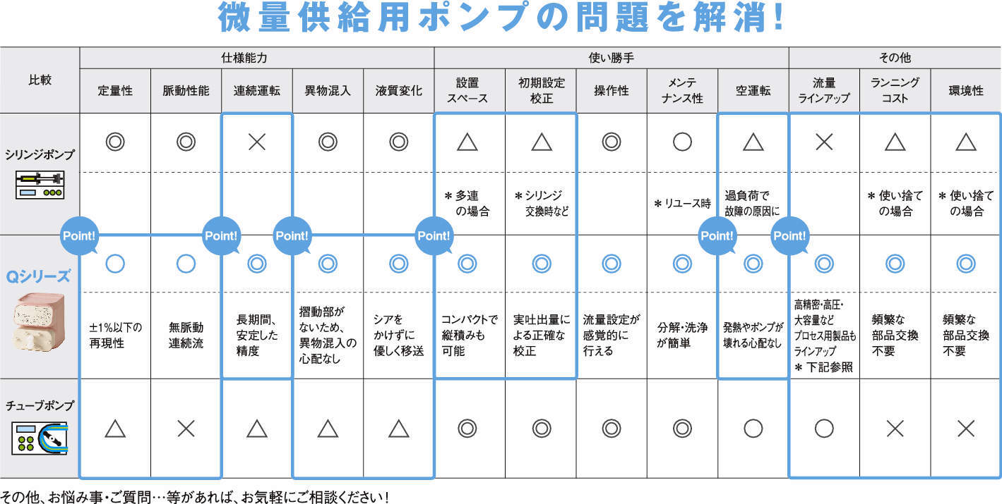 ・『Qシリーズ』は、その送液技術を初めてラボスケールに応用したポンプです。