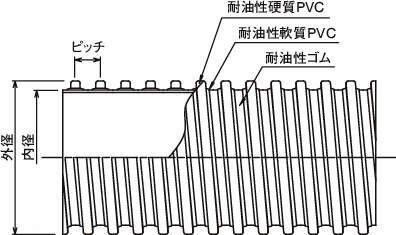 ・耐摩耗、耐油性、静電気防止効果の3つの要素を併せ持つ、耐油性ゴムと耐油性軟質塩ビ・硬質塩ビから成るハイブリッドホース。