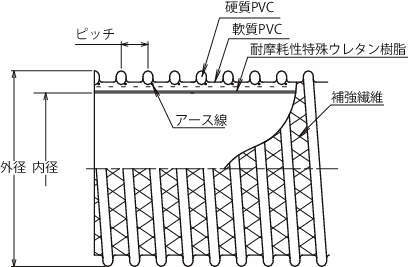 ・外面凹凸形状、補強繊維入りなので、軽量、曲げやすさ、耐圧性能に優れます。