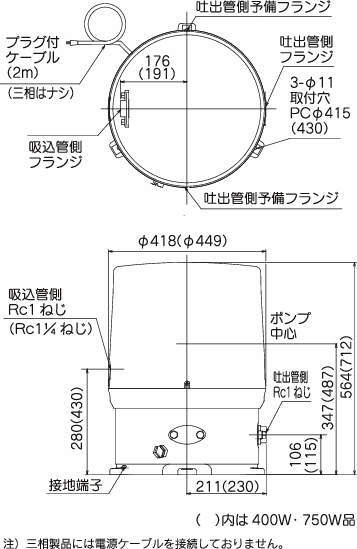 | WP-3755T-2 | 三相200V | 50 | 750 | 1120 | 8 | 16 | 64 | 180 | 280 | 30 | 1・1/6B | 25 | 1B | 31.0 |