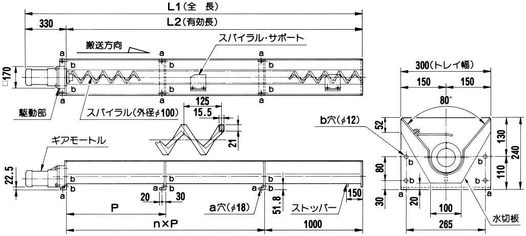 | 搬送速度 | 3.75m/min(50Hz)、4.5m/min(60Hz) |