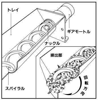・特殊強靭角バネの回転で、どんな物でも確実に搬送。