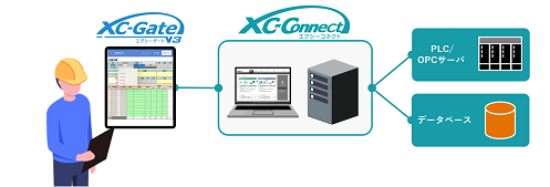 XC-Connect(エクシーコネクト)をPCやサーバーにインストールすることで、通信可能なPLCや基幹システムのデータベースと連携することができます。システム連携をシームレスにすることで、作業コストを削減します。