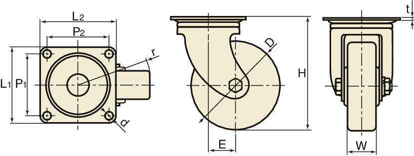 ■車輪回転部にローラーベアリングが入っておりますので荷重に対する耐久力が高いうえ、車輪回転が円滑です。