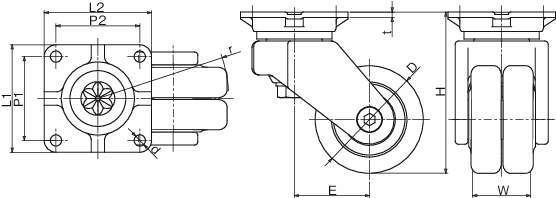 ・双輪構造を採用、高荷重でも回転はスム−ズ。