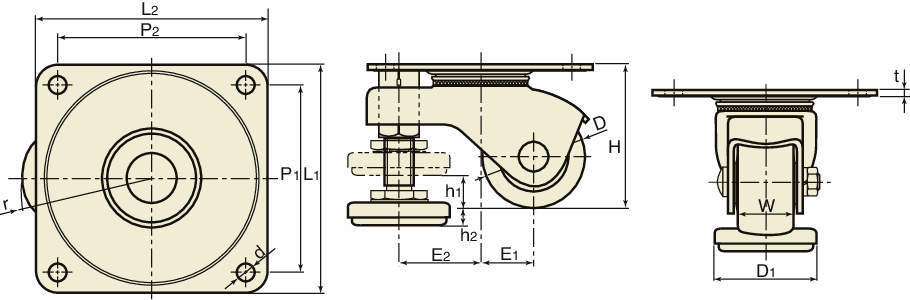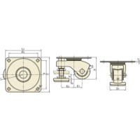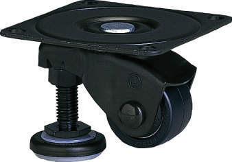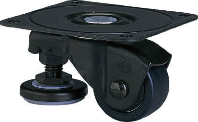 ・車輪とフットが同一部に組み込んであり、同時旋回しますので設置面の状況によりフットの位置が自由に変えられ、また旋回半径がキャスター単体とほとんど変わりません。