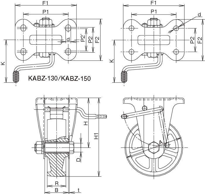 ・KABZ型ステンレス製ストッパー付固定金具付きのキャスターです。