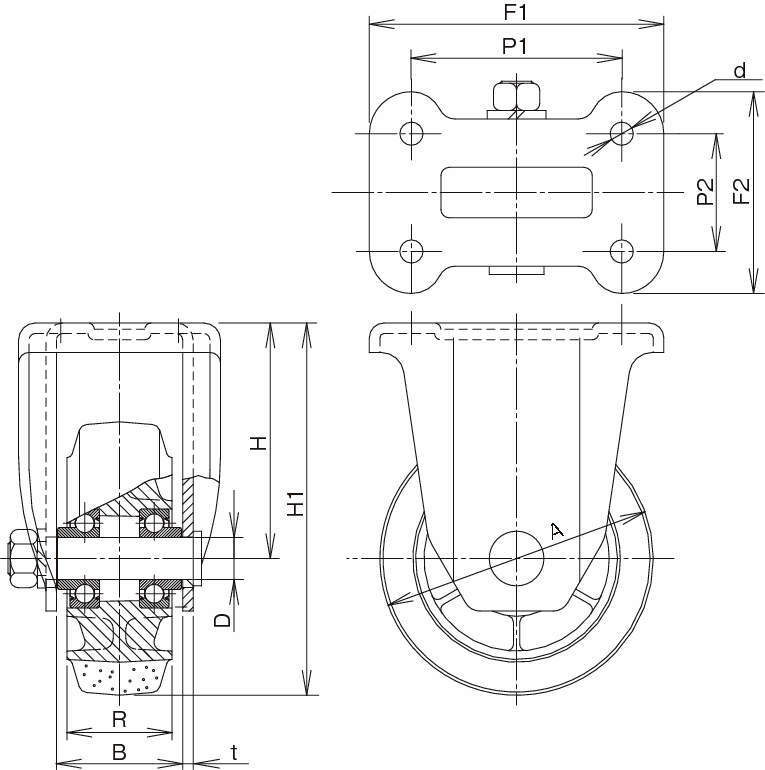 ・KH型重荷重用固定金具付きのキャスターです。