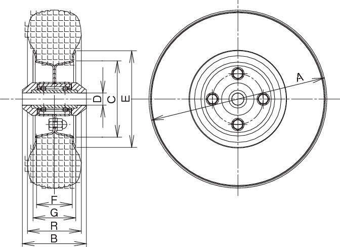 | 外径 A | 幅 R | 外径 E | 内径 C | 外幅 G | 内幅 F | |||||||