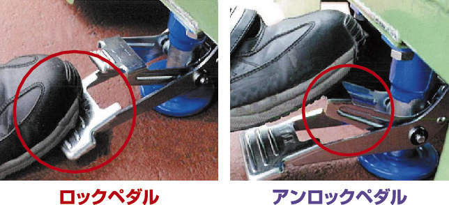 ・ロックペダル、アンロックペダルを踏み込むだけで、簡単・確実に台車の移動をロック&アンロックできます。
