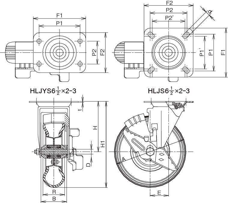 産業車輌用キャスター|ストッパー付き旋回キャスター HLJS/HLJYS