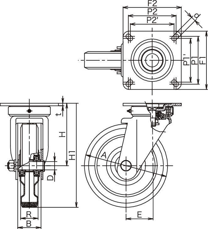・リッチウレタンを採用し始動抵抗が小さいRUM車輪と旋回部にベアリングを使用し旋回抵抗が小さいJP金具を組み合わせる事により、重い荷物も楽々運べるバツグンの軽さ(始動性能)を実現!