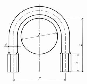 ・U字形状のボルトで締めつけます。パイプの寸法に合わせて各サイズが有ります。一般的に転造径で、ステンレス鋼(SUS304)なので耐食性、耐熱性に優れています。
