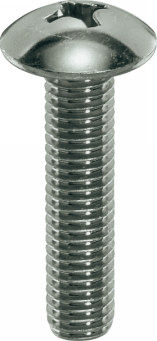 ・十字穴付きのトラス頭小ねじです。頭部が出ても差し支えない所に使われます。座面が大きいので、座面陥没を防止する効果が有ります。耐食性向上のため、三価クロメートメッキ(薄青っぽい色合い)がしてあります。