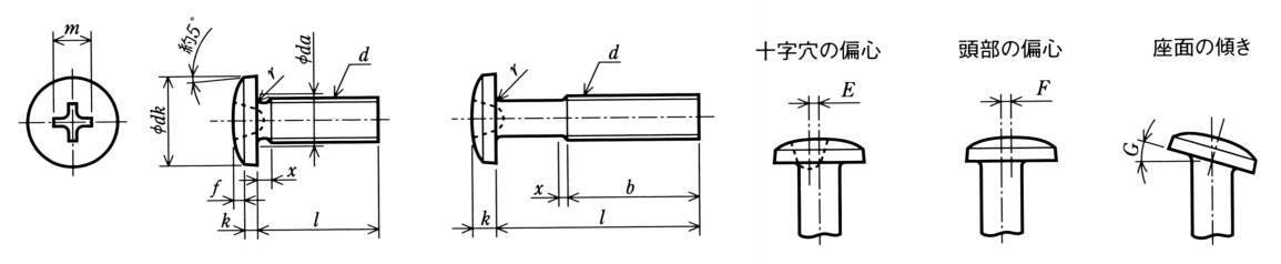 ・ボルトに比べ小さな部材の一般的な締結に使用します。なべ頭に比べ頭部が大きいので、締付け部材の取付け穴を隠すのに便利です。生地に比べ耐食性があります。RoHSなど環境規制対応品です。