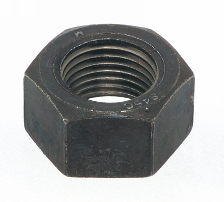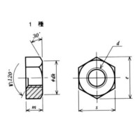 ・1種(片面取り)の六角ナットで、高さは呼び径の8割、ねじピッチが標準のものより細かくできています。S45C材に熱処理を施し強度を高くして有ります。メッキはして有りません。
