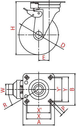 ・取付座がプレート状となっており、ねじやボルトで取付けるタイプのキャスター。