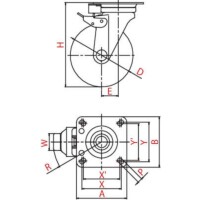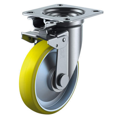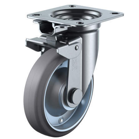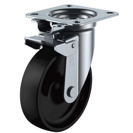・取付座がプレート状となっており、ねじやボルトで取付けるタイプのキャスター。