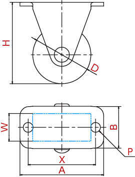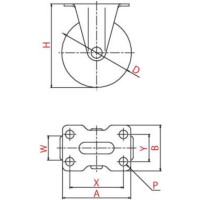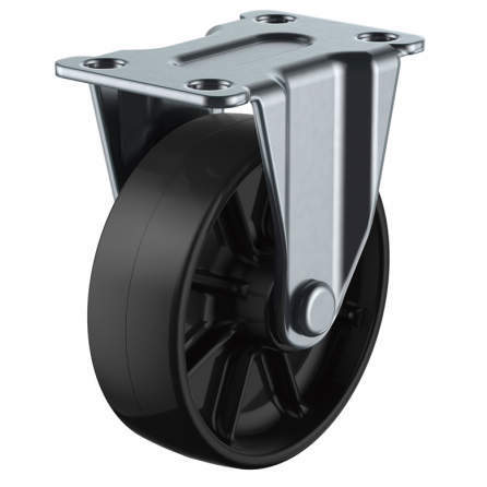 ・取付座がプレート状となっており、ねじやボルトで取付けるタイプのキャスター。