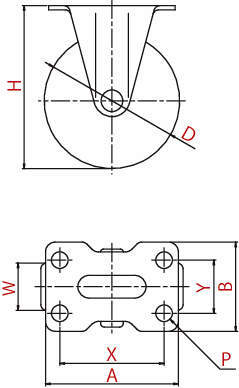ユーエイキャスター(軽荷重)|固定車 プレート式 GR型