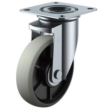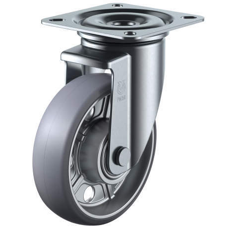 ・取付座がプレート状となっており、ねじやボルトで取付けるタイプのキャスター。