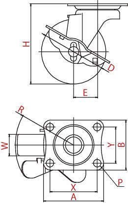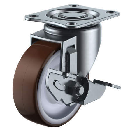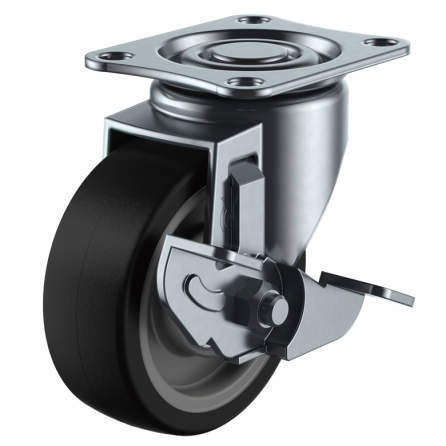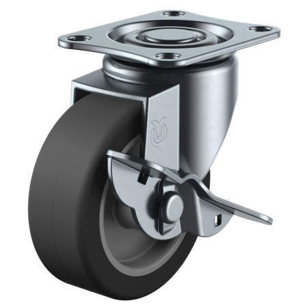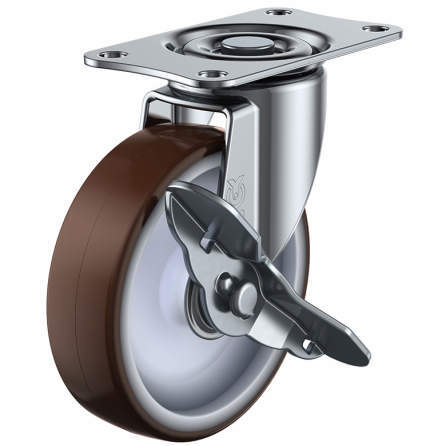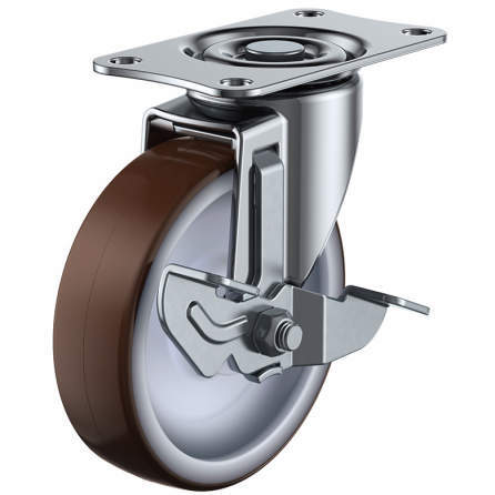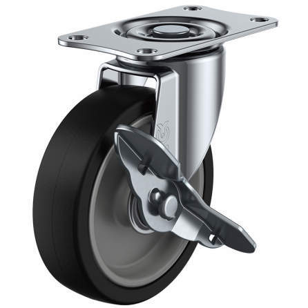 ・取付座がプレート状となっており、ねじやボルトで取付けるタイプのキャスター。