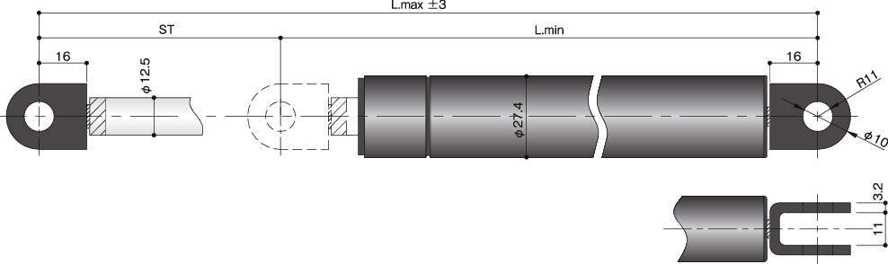 ・ユーエイ・ガススプリングはコイルバネに比べバネ定数が低いため長い圧縮ストロークにわたってほぼ一定のバネ力が発生でき、扉類の開閉用として最適の特性を持っています。