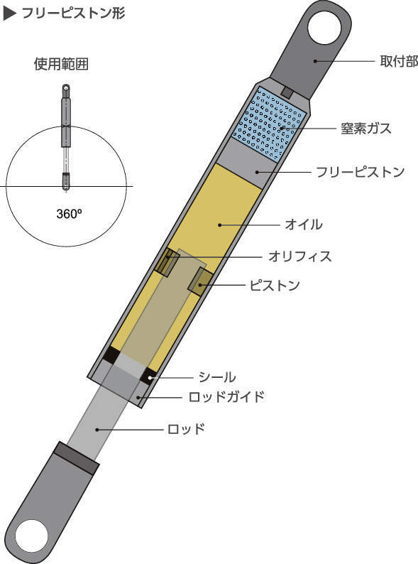 ・ユーエイ・ガススプリングはコイルバネに比べバネ定数が低いため長い圧縮ストロークにわたってほぼ一定のバネ力が発生でき、扉類の開閉用として最適の特性を持っています。
