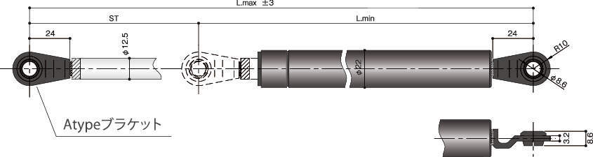 ・ユーエイ・ガススプリングはコイルバネに比べバネ定数が低いため長い圧縮ストロークにわたってほぼ一定のバネ力が発生でき、扉類の開閉用として最適の特性を持っています。