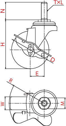 ユーエイキャスター(軽荷重)|自在車(ダブルベアリング) ねじ込み式 ST-S型(シングルストッパー付)