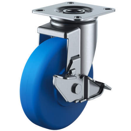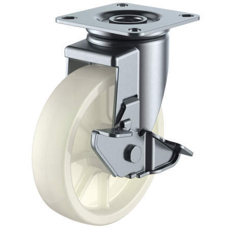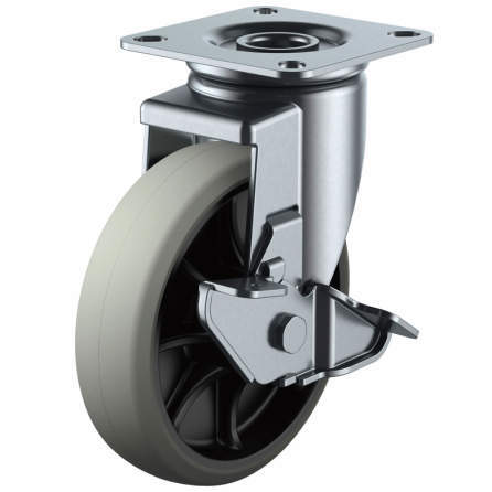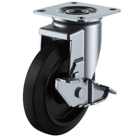 ・取付座がプレート状となっており、ねじやボルトで取付けるタイプのキャスター。