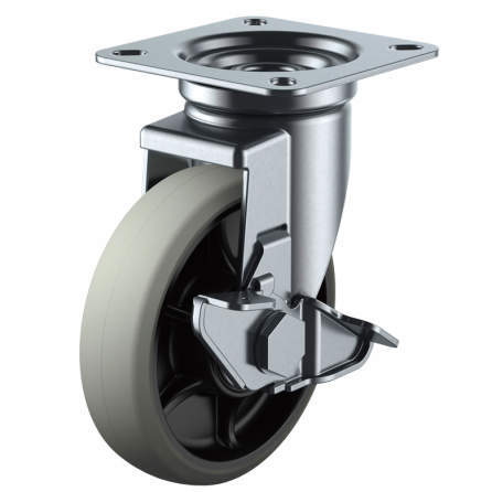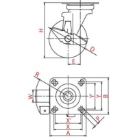 ・取付座がプレート状となっており、ねじやボルトで取付けるタイプのキャスター。