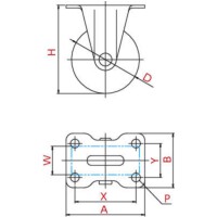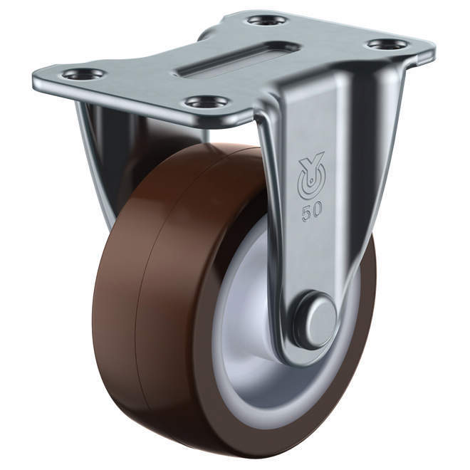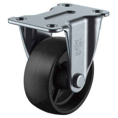 ・取付座がプレート状となっており、ねじやボルトで取付けるタイプのキャスター。