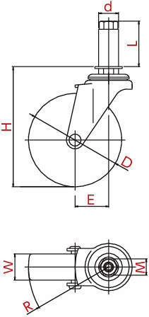 ・ステムにゴムパイプがついており、直接パイプ等に取付けるタイプのキャスター。