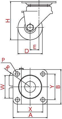 ユーエイキャスター(低床重荷重)|自在車(ダブルベアリング) プレート式 HG-W型