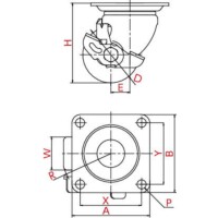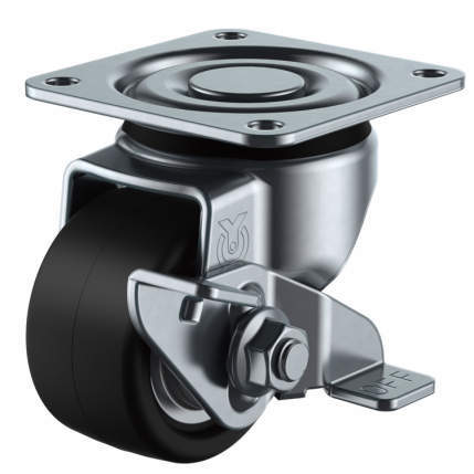 ・取付座がプレート状となっており、ねじやボルトで取付けるタイプのキャスター。