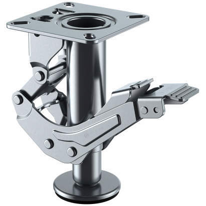 ■台車を安全に保持し、ワンタッチで路面をグリップするキャスター補助製品です。