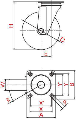 ・旋回部と車輪が回転するキャスターです。