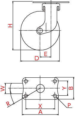 ユーエイキャスター(低騒音仕様)|自在車(ラジアルベアリング) プレート式 EF型