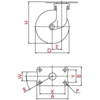 ・取付座がプレート状となっており、ねじやボルトで取付けるタイプのキャスター。