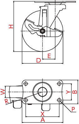 ユーエイキャスター(低騒音仕様)|自在車(ラジアルベアリング) プレート式 SFHG-S型(シングルストッパー付)
