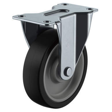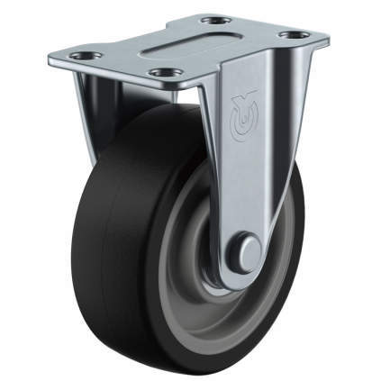 ・取付座がプレート状となっており、ねじやボルトで取付けるタイプのキャスター。