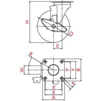 ・取付座がプレート状となっており、ねじやボルトで取付けるタイプのキャスター。