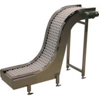 最大角度75°、最大揚程300cmまで可能な昇り傾斜搬送コンベヤ。